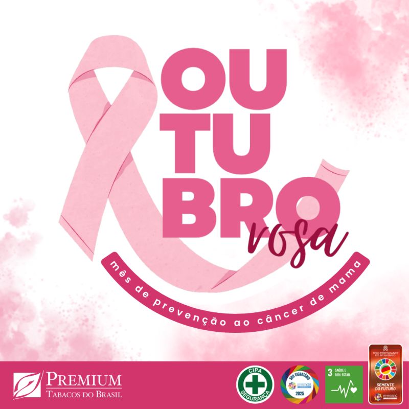 Outubro Rosa - Mês de conscientização e luta contra o Câncer de Mama Um toque muda tudo. Faça o autoexame e previna-se! A Premium Tabacos guarda esta causa do lado esquerdo do peito.