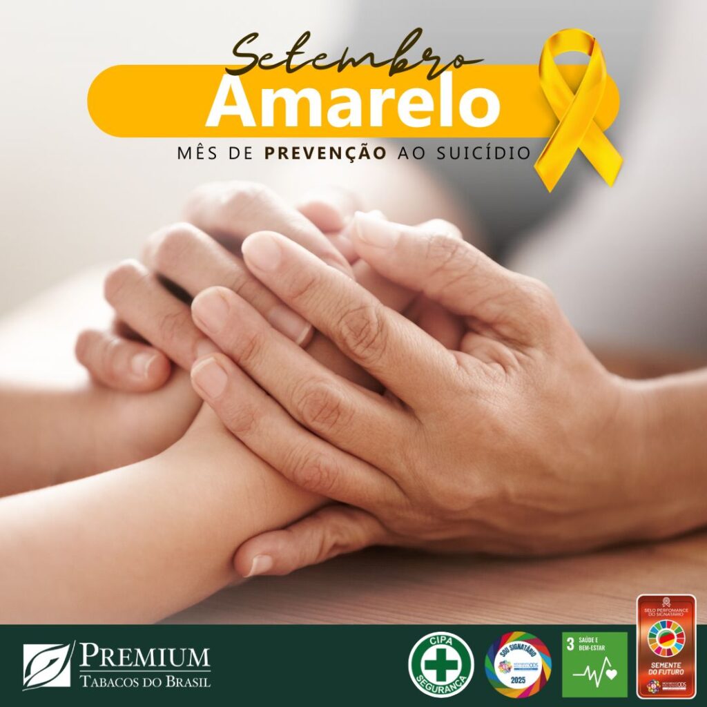 No mês de setembro, a Associação Brasileira de Psiquiatria incentiva a busca de informação e reflexão a respeito de doenças mentais que podem levar ao suicídio. Todos nós devemos atuar ativamente na conscientização e prevenção do suicídio, tema que ainda é visto como tabu. É importante falar sobre o assunto para que as pessoas que estejam passando por momentos difíceis e de crise busquem ajuda e entendam que a vida sempre vai ser a melhor escolha. Com o apoio do SESI Santa Cruz do Sul, a Premium Tabacos está comprometida a abordar este assunto durante o mês, para sensibilizar as equipes a olhar para os colega e para si com empatia e cuidado. Você não está sozinho! Busque ajuda.