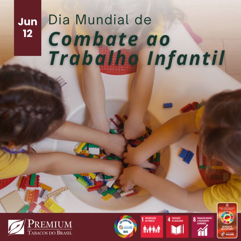 O trabalho infantil é caracterizado por qualquer atividade laboral desempenhada por crianças e adolescentes abaixo da idade legal estabelecida por cada nação. No Brasil, a legislação, conforme estipulado pela CLT, proíbe o emprego noturno, perigoso ou insalubre para menores de 18 anos, e qualquer tipo de trabalho para menores de 16 anos, exceto na modalidade de aprendizagem, a partir dos 14 anos. O Programa Internacional para a Erradicação do Trabalho Infantil (IPEC+), da Organização Internacional do Trabalho (OIT), é um dos principais esforços globais para combater essa prática prejudicial. Dentro da cadeia produtiva do tabaco, recebemos o suporte do Instituto Crescer Legal, por meio do Programa de Aprendizagem Profissional Rural, e da ECLT Foundation (Eliminating Child Labour in Tobacco Growing), que se dedica a soluções colaborativas para as famílias e crianças nas comunidades envolvidas na produção de tabaco, visando combater as raízes do trabalho infantil. Como sociedade, temos a responsabilidade de garantir que crianças e adolescentes tenham acesso aos seus direitos fundamentais, como o direito de brincar, estudar e sonhar, uma vez que essas experiências são essenciais para o seu desenvolvimento saudável. Se testemunhar qualquer forma de trabalho infantil, é fundamental denunciar através do Disque 100 ou às autoridades locais, como as Delegacias do Trabalho e os Conselhos Tutelares. Cada um de nós tem um papel a desempenhar nesse esforço coletivo, pois todas as crianças e adolescentes merecem uma infância livre, protegida e repleta de oportunidades! Digamos não ao trabalho infantil!