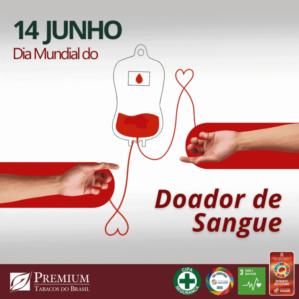 Doação de sangue é um ato altruísta, solidário e amoroso. Uma doação pode salvar até quatro vidas! A CIPA, o Ambulatório e toda a Premium Tabacos apoiam esta causa! Junte-se a nós. Seja um doador.