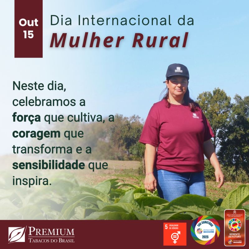 Nossa admiração e respeito à todas as mulheres pelas suas conquistas diárias. Nosso carinho especial à cada uma de nossas colegas efetivas, safristas e produtoras que movimentam a Premium Tabacos com a força de seu trabalho.
