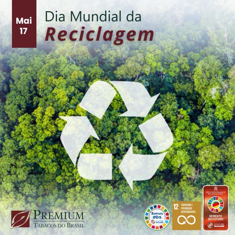 Instituída pela Organização das Nações Unidas (ONU), a data existe como forma de incentivar e conscientizar a sociedade em relação aos benefícios da redução e reciclagem de resíduos. Reciclagem é o processo de converter materiais usados em novos produtos para evitar o desperdício de recursos naturais, reduzir a poluição e economizar energia. O processo envolve a coleta, separação, processamento e transformação de materiais descartados, como plástico, papel, vidro e metal, em novos produtos ou matérias-primas que podem ser utilizadas na fabricação de outros itens. A reciclagem desempenha um papel importante na preservação do meio ambiente e na promoção da sustentabilidade, ajudando a minimizar o impacto negativo da atividade humana no planeta. Através do Programa SOL (Saúde, Organização e Limpeza), a Premium Tabacos orienta e estimula todos os setores da empresa a contribuir com o correto descarte, garantindo assim, a destinação final adequada dos resíduos gerados durante suas atividades e processo produtivo. Junte-se à nós, para contribuirmos cada vez mais com práticas sustentáveis!