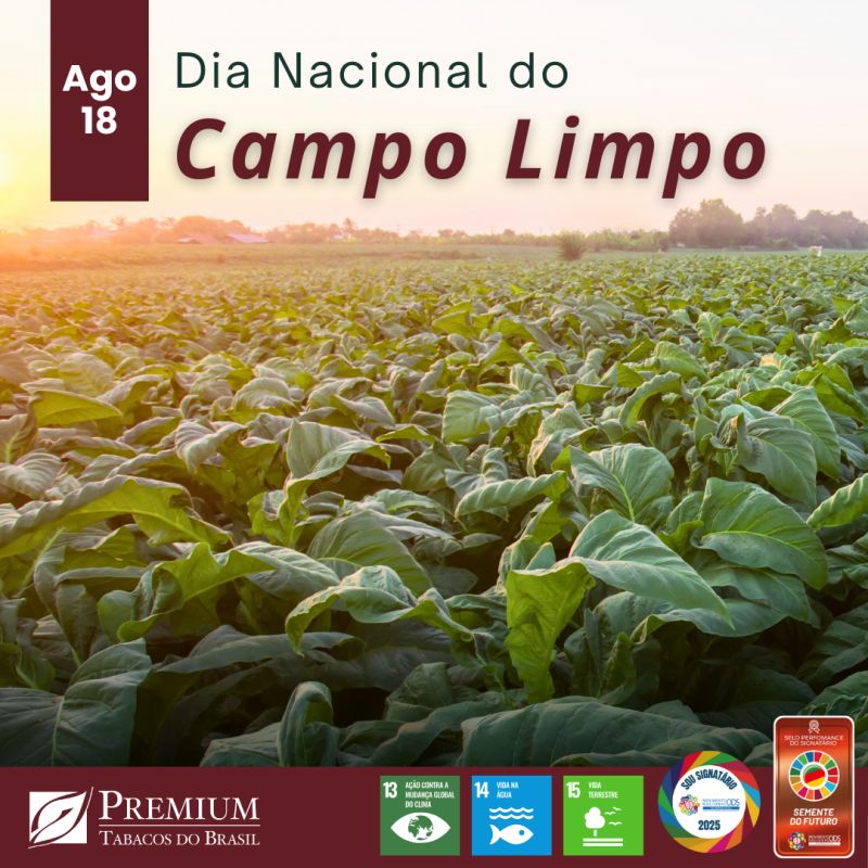 Em 18 de agosto é comemorado o Dia Nacional do Campo Limpo, criada pelo inpEV, é um marco fundamental para o agronegócio brasileiro. É um dia para reforçarmos a importância da logística reversa de embalagens vazias de defensivos agrícolas, um pilar essencial para a sustentabilidade do nosso campo. Na Premium Tabacos do Brasil, estamos profundamente comprometidos com práticas que assegurem um futuro mais verde e produtivo. Reconhecemos o papel vital de cada elo da cadeia - agricultores, indústria, distribuidores e poder público - no sucesso do Sistema Campo Limpo, que faz do Brasil referência mundial nessa área. Nosso compromisso vai além da conscientização. Atuamos ativamente para que o campo seja cada vez mais limpo, seguro e sustentável. Temos orgulho de apoiar e participar ativamente de iniciativas como o Programa de Recebimento de Embalagens Vazias de Agrotóxicos no RS, SC e PR. Esta parceria estratégica nos permite levar as soluções de descarte correto diretamente aos produtores de tabaco, garantindo que as embalagens vazias recebam a destinação adequada, contribuindo decisivamente para a proteção do meio ambiente e a saúde de todos.