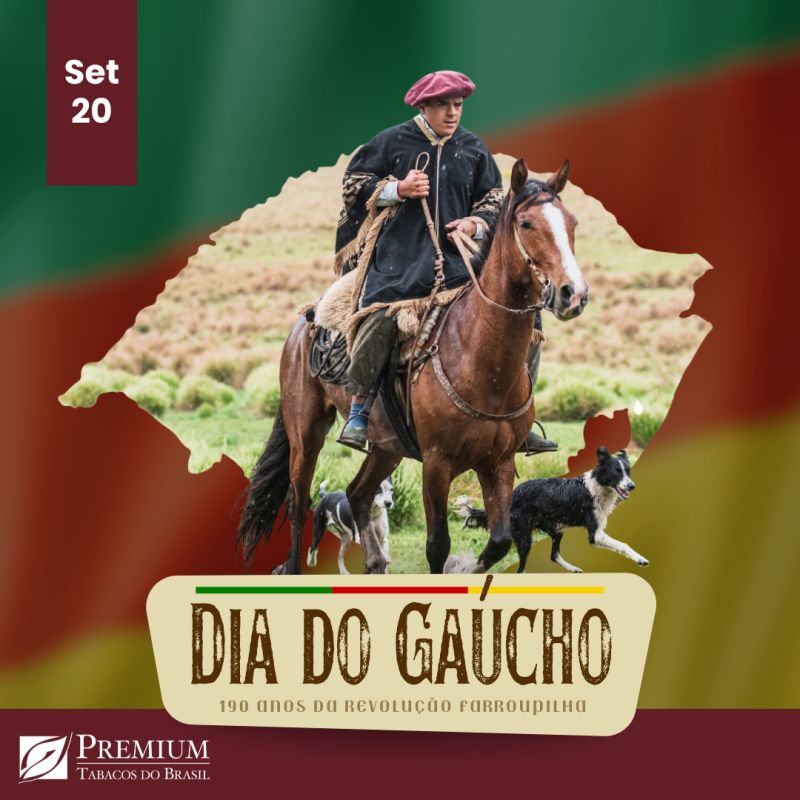 Neste 20 de setembro, celebramos com orgulho o Dia do Gaúcho e os 190 anos da Revolução Farroupilha. É tempo de honrar a bravura, a tradição e o legado que moldam a identidade do povo gaúcho. Na Premium Tabacos do Brasil, reconhecemos a força de uma cultura que resiste ao tempo e inspira gerações. Que o espírito farroupilha continue vivo em cada gesto, em cada história e em cada coração que pulsa pelo Rio Grande do Sul. Viva o nosso chão, viva o nosso povo!