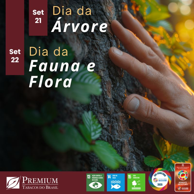 Essas datas nos lembram que flora e fauna são interdependentes e reforçam o compromisso da Premium Tabacos com a preservação do meio ambiente. Proteger as florestas é essencial para a sobrevivência dos animais, assim como cuidar da fauna é fundamental para o equilíbrio e a saúde dos ecossistemas. Vamos juntos cultivar essa consciência e plantar essa ideia!