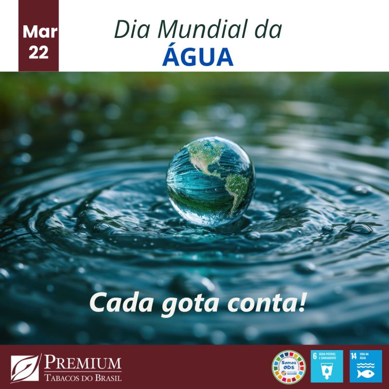 Em 1992, durante a Conferência das Nações Unidas sobre Meio Ambiente e Desenvolvimento (UNCED), também conhecida como ECO-92, realizada no Rio de Janeiro, Brasil, a ONU instituiu o Dia Mundial da Água, com o objetivo de sensibilizar e promover a conscientização sobre a importância da água doce e da gestão sustentável dos recursos hídricos. Anualmente a Organização das Nações Unidas (ONU) escolhe um tema específico, abordando diferentes aspectos relacionados à água. No ano de 2024 o tema proposto pelo Brasil é “A Água nos Une, o Clima nos Move”. A Premium Tabacos reconhece a importância da gestão da água para a nossa empresa, nossas comunidades e o nosso planeta. Estamos empenhados em apoiar o direito humano à água e estamos alinhados com o Objetivo de Desenvolvimento Sustentável da ONU para “Garantir a disponibilidade e a gestão sustentável da água e do saneamento para todos” através da: • Total conformidade com todos os requisitos ambientais legais aplicáveis; • Melhoria contínua na gestão da água; • Definição de metas de gestão da água nas fábricas e reportando o progresso anualmente às partes interessadas externas; • Envolvimento com nossos produtores na orientação das melhores práticas de gestão de água e adoção de tecnologia. A água nos une. Preserve-a!
