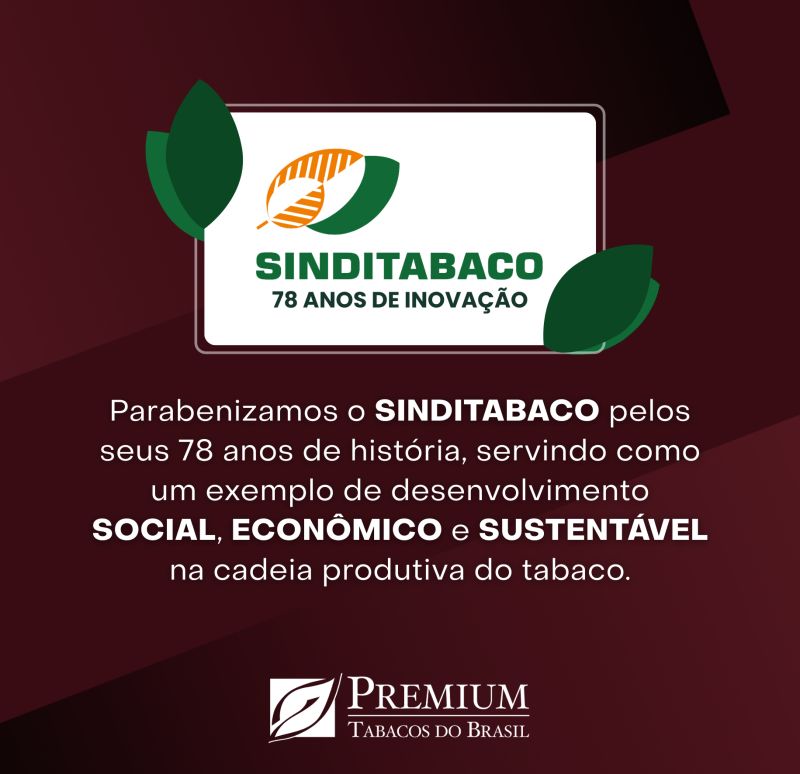 Parabéns SINDITABACO pelos seus 75 anos atuando pela sustentabilidade do setor e representando os interesses comuns das indústrias de tabaco.